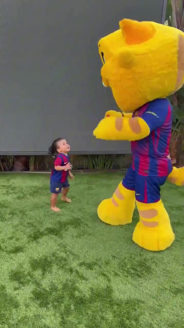 迪士尼事件之后,巴萨吉祥物看望拉菲尼亚儿子并与其互动