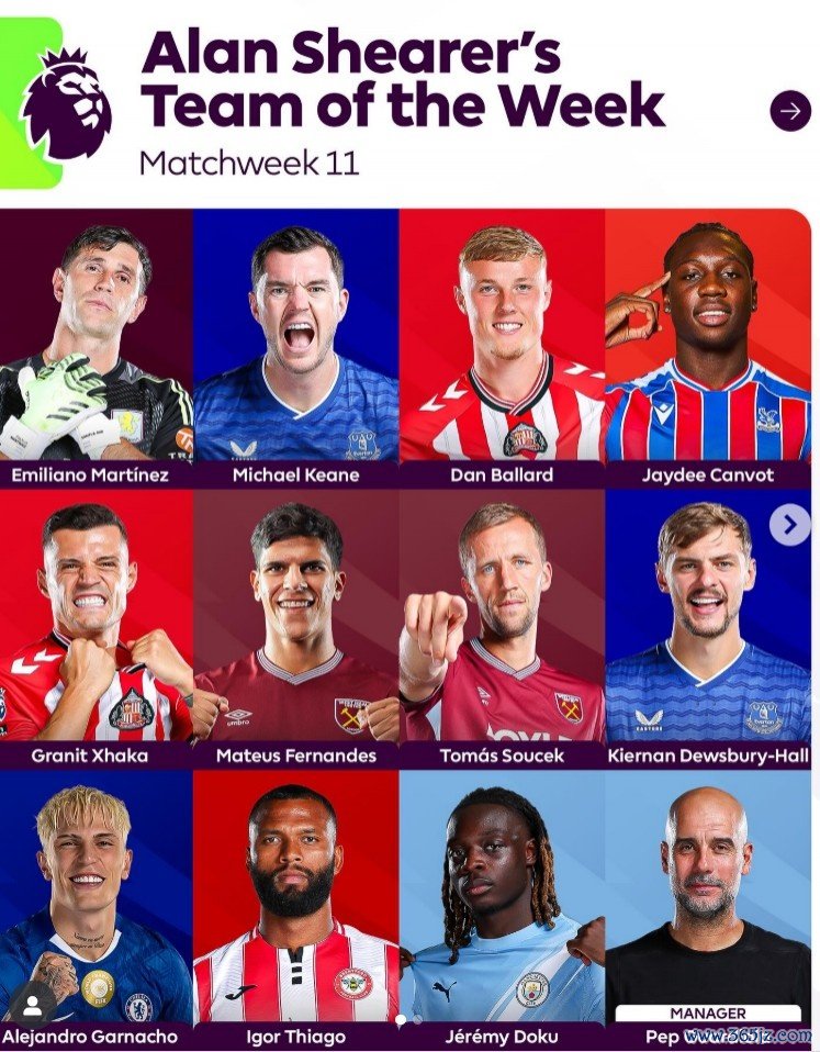 11月10日讯 本轮英超战罢,阿兰-希勒也评选出本轮英超最佳阵,足球直播无插件免费在线观看具体如下: