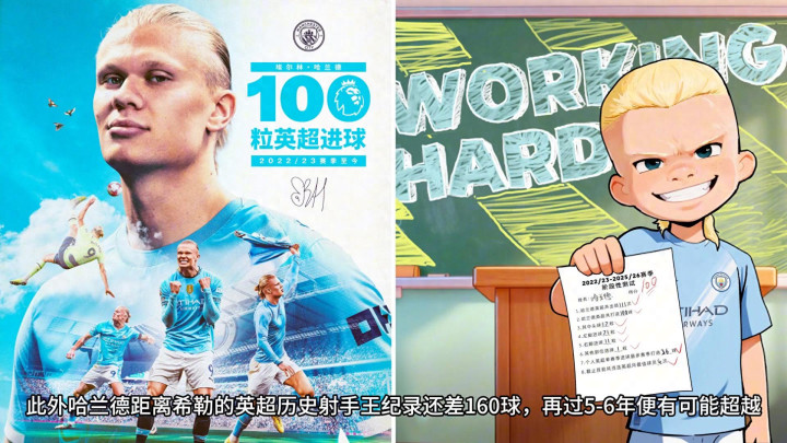·哈兰德111次出场就达成100球里程碑,成为了英超历史最快完成英超百球的球员。此外哈兰德距离希勒的英超历史射手王记录 还差160球,再过5-6年便有可能跨越 。