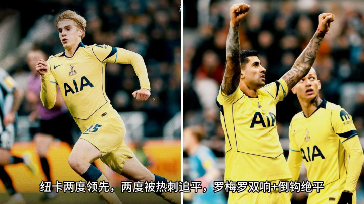 ·热刺客场应战 2-2战平纽卡斯尔联,欧洲杯直播吧五轮不胜暂列第11位。纽卡两度领跑 ,两度被热刺追平,罗梅罗双响+倒钩绝平。