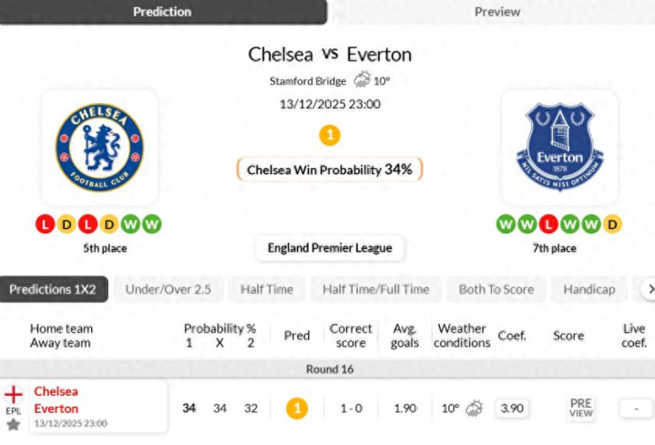 群众足球赛事 主队对赛往绩全面领跑 ! 海外情报: 切尔西VS埃弗顿