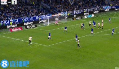 (费兰打门)皮球原本有点偏离方向,但速度很慢,我只需要把它推进门就行了。