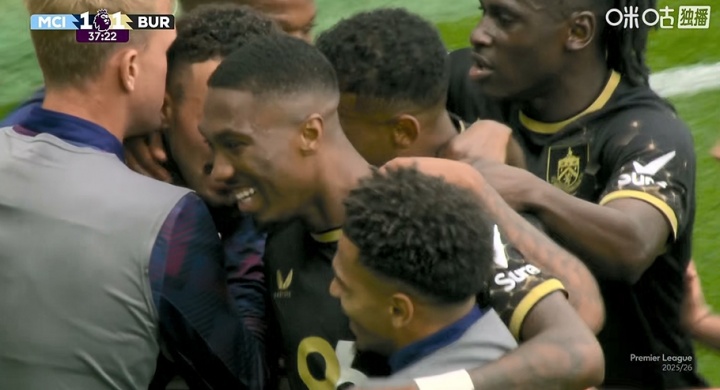 曼城遭扳平!赛事 第37分钟,杰顿-安东尼折射破门,曼城1-1伯恩利