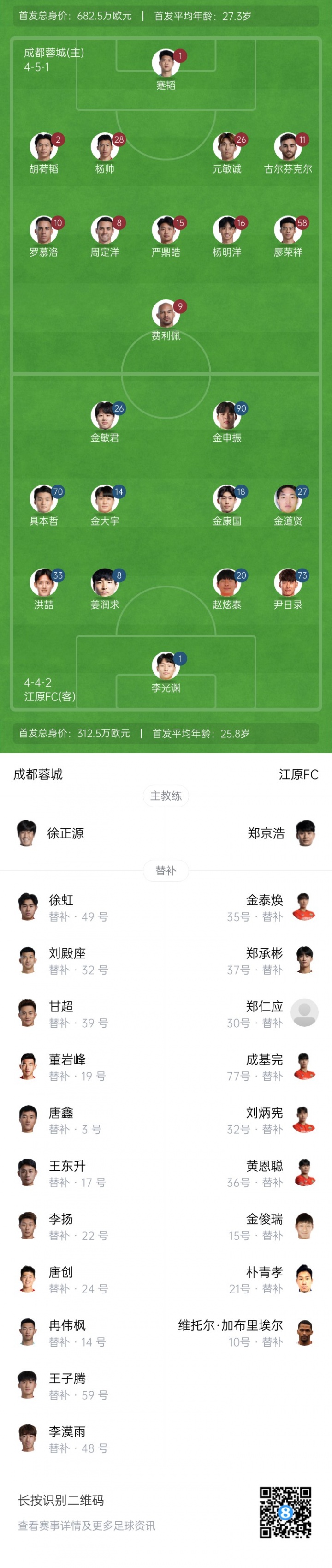 蓉城vs江原杆位:蓉城尽遣主力!罗慕洛、费利佩先发,周定洋登场